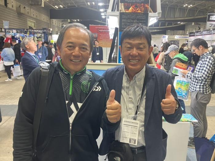 通路で退屈にしていたら小野信昭(ダイワフィールドテスター)に声を掛けられ暫し釣り談義。